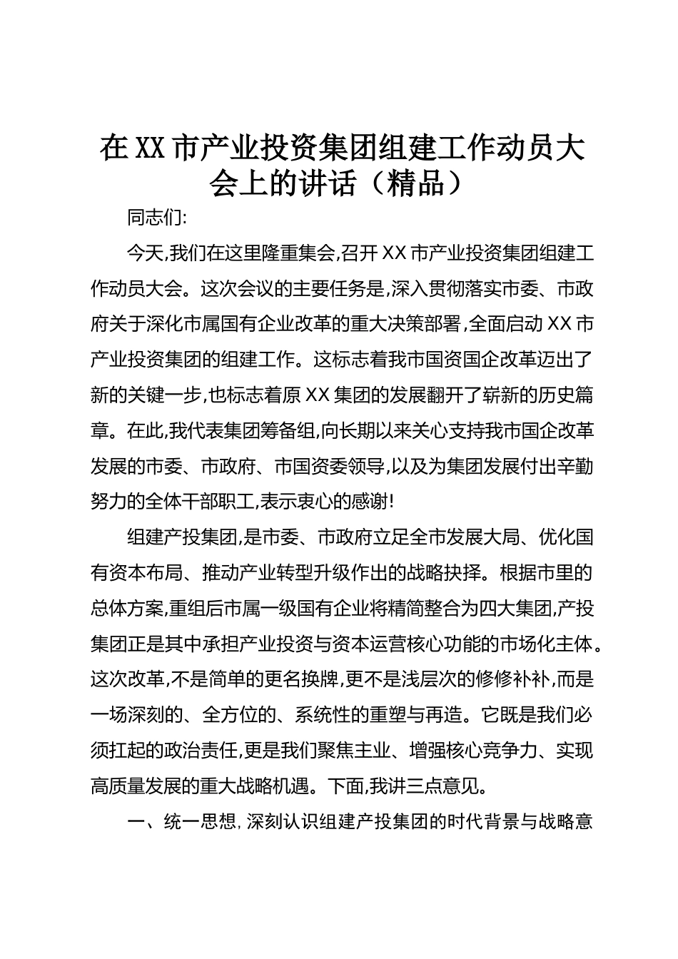 在XX市產(chǎn)業(yè)投資集團(tuán)組建工作動(dòng)員大會(huì)上的講話(精品)VIP免費(fèi)