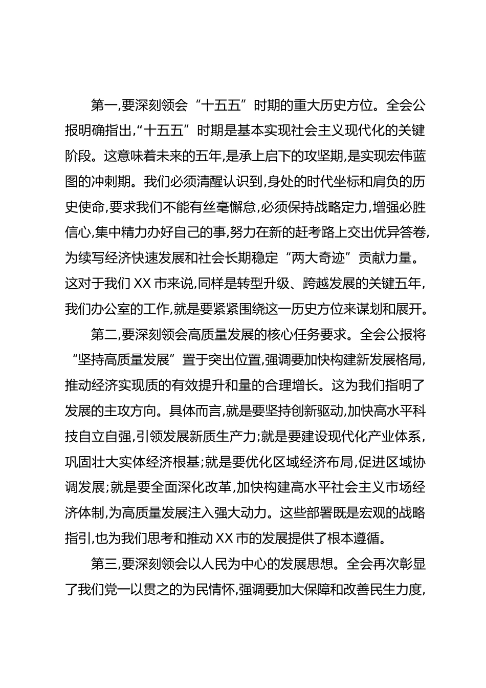 在XX市委辦公室傳達學習黨的二十屆四中全會精神專題會議上的總結(jié)講話(精品)同志們:今天,我們召開這次專題會議,主要任務(wù)是傳達學習剛剛閉幕的黨的二十屆四中全會精神,研究部署辦公室的貫徹落實工作。剛才,XX同志傳達了全會公報的主要內(nèi)容,幾位同志也交流了初步的學習體會。大家講得都很好,認識深刻,思考深入。下面,我結(jié)合辦公室的職能定位和工作實際,再講三點意見,作為本次會議的總結(jié)。一、提高政治站位,深刻領(lǐng)會全會精神的豐富內(nèi)涵黨的二十屆四中全會,是在中華人民共和國成立76周年之際,在全面建設(shè)社會主義現(xiàn)代化國家、向第二個百年奮斗目標進軍的關(guān)鍵時刻,召開的一次...