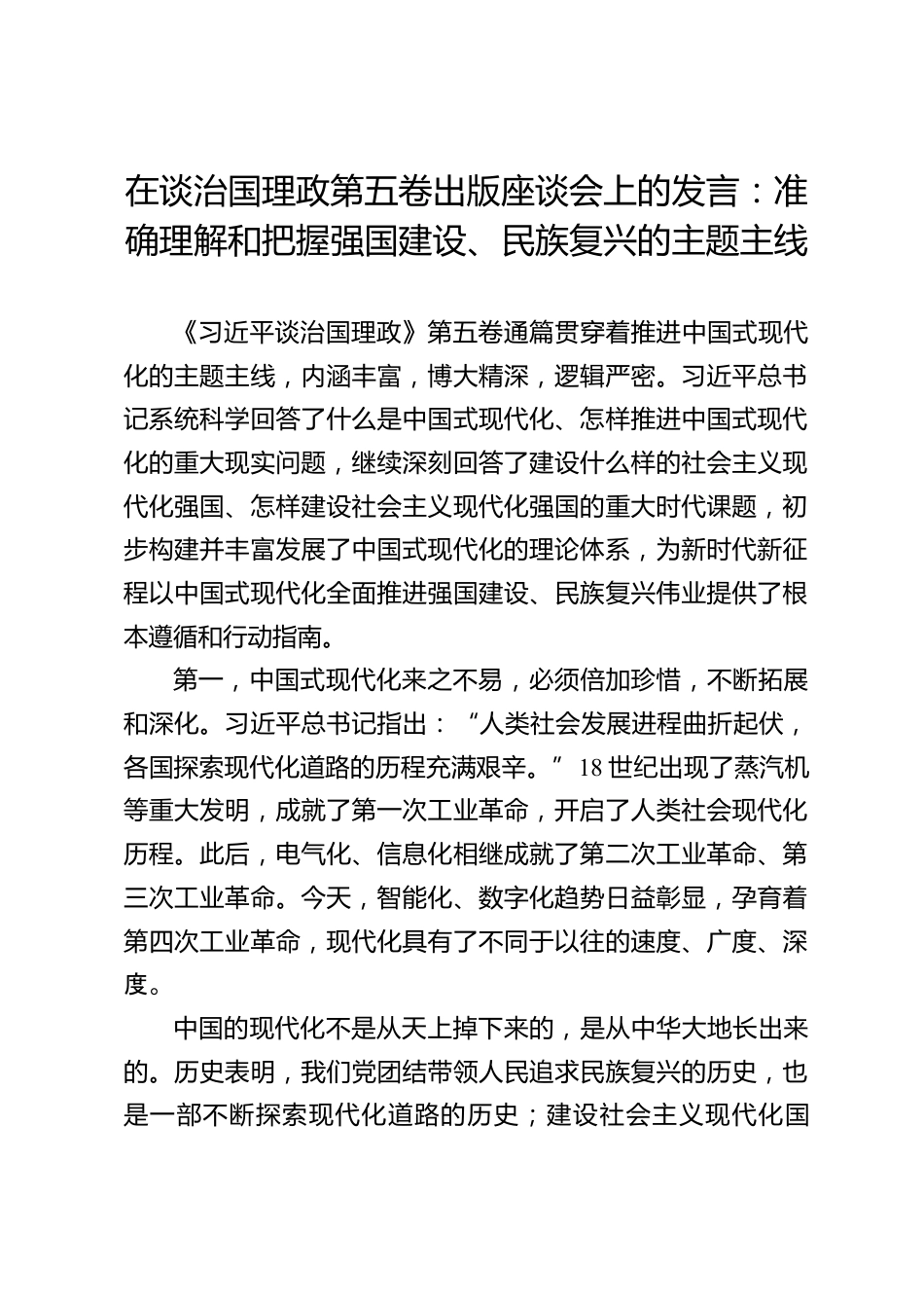 在談治國理政第五卷出版座談會上的發(fā)言:準(zhǔn)確理解和把握強國建設(shè)、民族復(fù)興的主題主線VIP免費