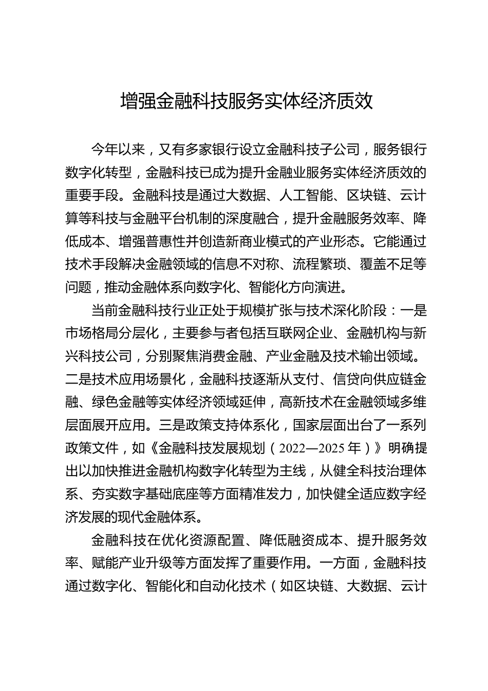 增強(qiáng)金融科技服務(wù)實(shí)體經(jīng)濟(jì)質(zhì)效