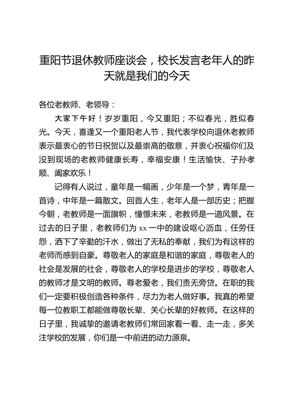 重陽節(jié)退休教師座談會,校長發(fā)言老年人的昨天就是我們的今天