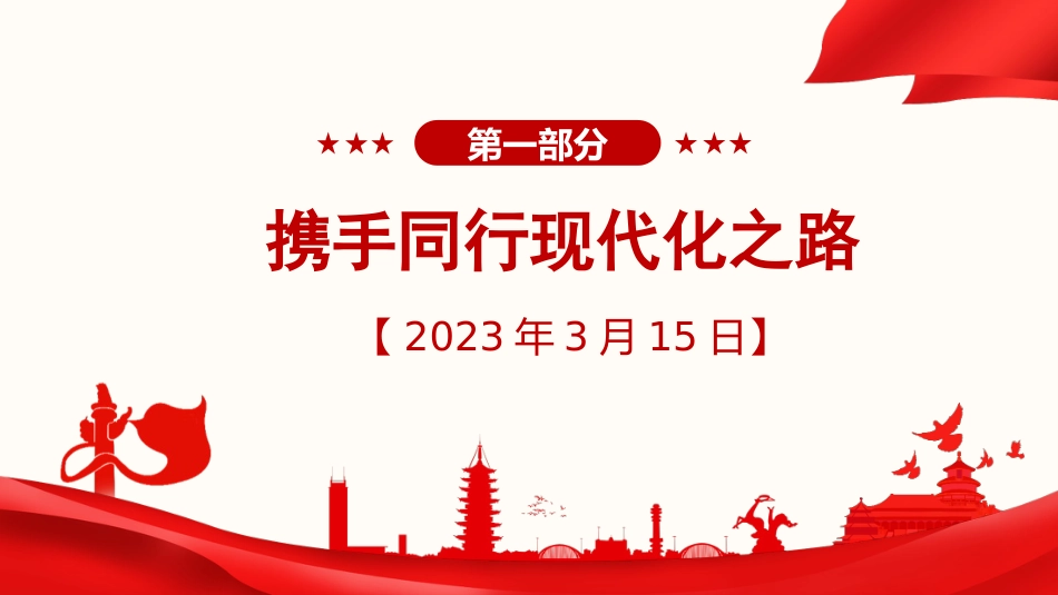 【第十六章】治國(guó)理政第五卷全文學(xué)習(xí)攜手推進(jìn)現(xiàn)代化,實(shí)現(xiàn)共同繁榮匯報(bào)人:xx匯報(bào)時(shí)間:20XX第一部分?jǐn)y手同行現(xiàn)代化之路【2023年3月15日】版權(quán)歸屬xi87.cn,官網(wǎng)xi87.cn攜手同行現(xiàn)代化之路?很高興同大家相聚,探討“現(xiàn)代化道路:政黨的責(zé)任”這一重要命題。?人類社會(huì)發(fā)展進(jìn)程曲折起伏,各國(guó)探索現(xiàn)代化道路的歷程充滿艱辛。當(dāng)今世界,多重挑戰(zhàn)和危機(jī)交織疊加,世界經(jīng)濟(jì)復(fù)蘇艱難,發(fā)展鴻溝不斷拉大,生態(tài)環(huán)境持續(xù)惡化,冷戰(zhàn)思維陰魂不散,人類社會(huì)現(xiàn)代化進(jìn)程又一次來(lái)到歷史的十字路口。尊敬的各位政黨領(lǐng)導(dǎo)人:女士們,先生們,朋友們:版權(quán)歸屬xi87.cn,官網(wǎng)xi87.cn攜手同行...