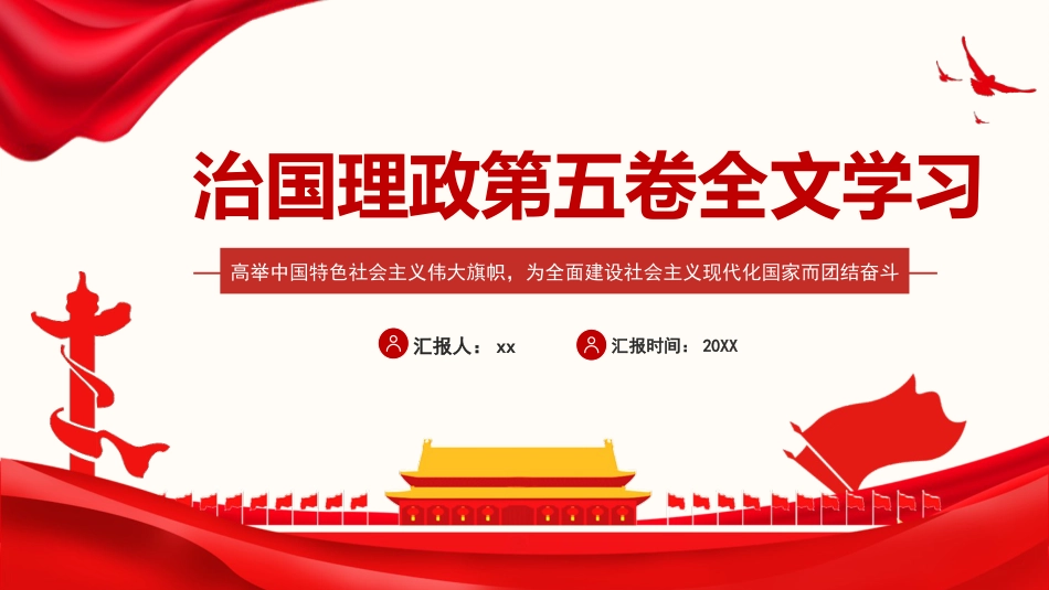 治國理政第五卷全文學習高舉中國特色社會主義偉大旗幟,為全面建設社會主義現(xiàn)代化國家而團結奮斗黨課PPT模板