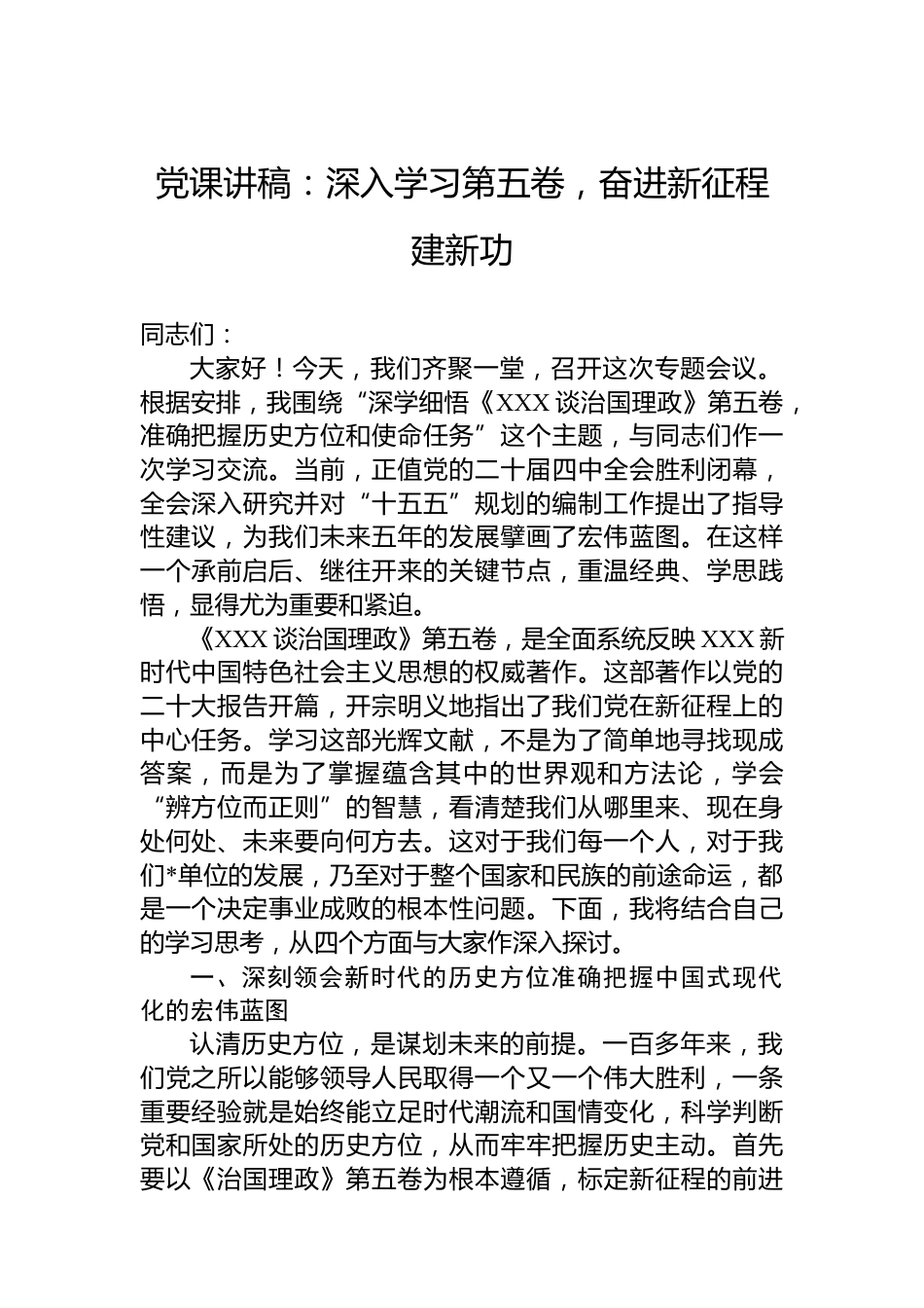 黨課講稿:深入學(xué)習(xí)第五卷,奮進(jìn)新征程建新功