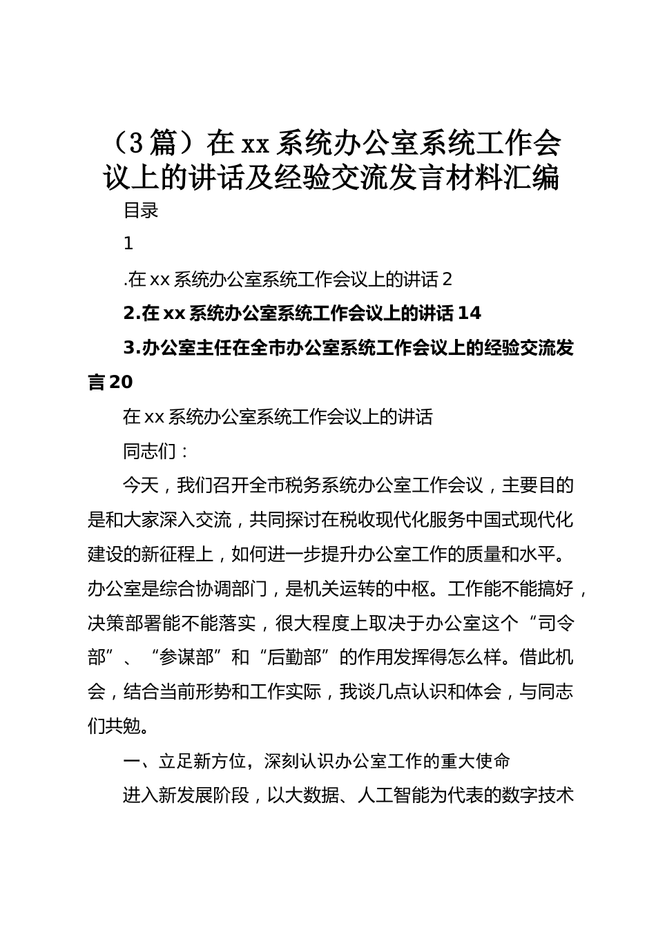 (3篇)在xx系統(tǒng)辦公室系統(tǒng)工作會議上的講話及經(jīng)驗交流發(fā)言材料匯編