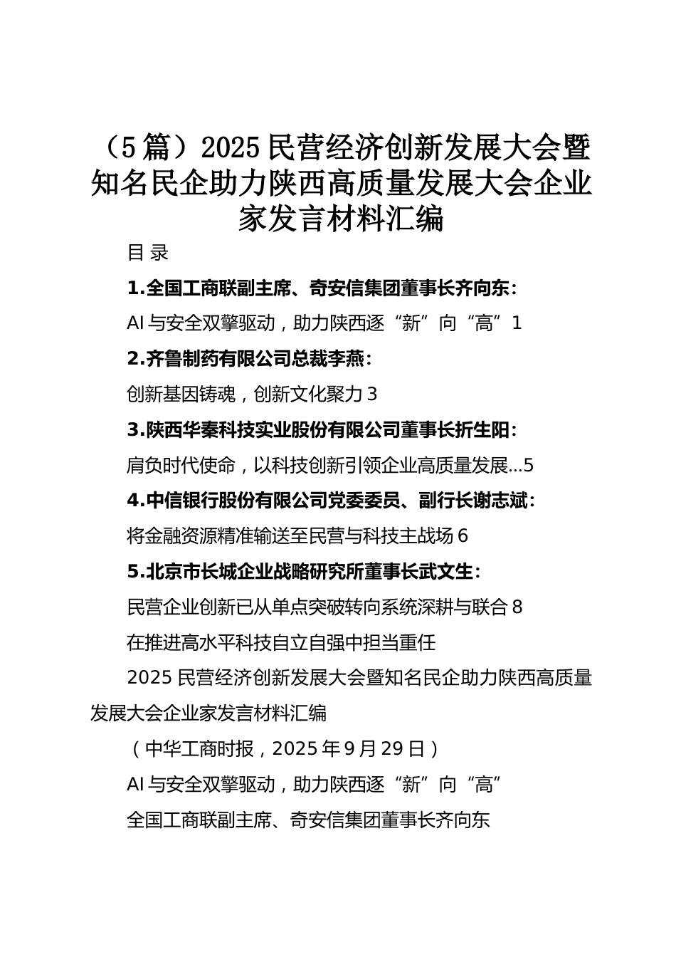 (5篇)2025民營經(jīng)濟創(chuàng)新發(fā)展大會暨知名民企助力陜西高質(zhì)量發(fā)展大會企業(yè)家發(fā)言材料匯編