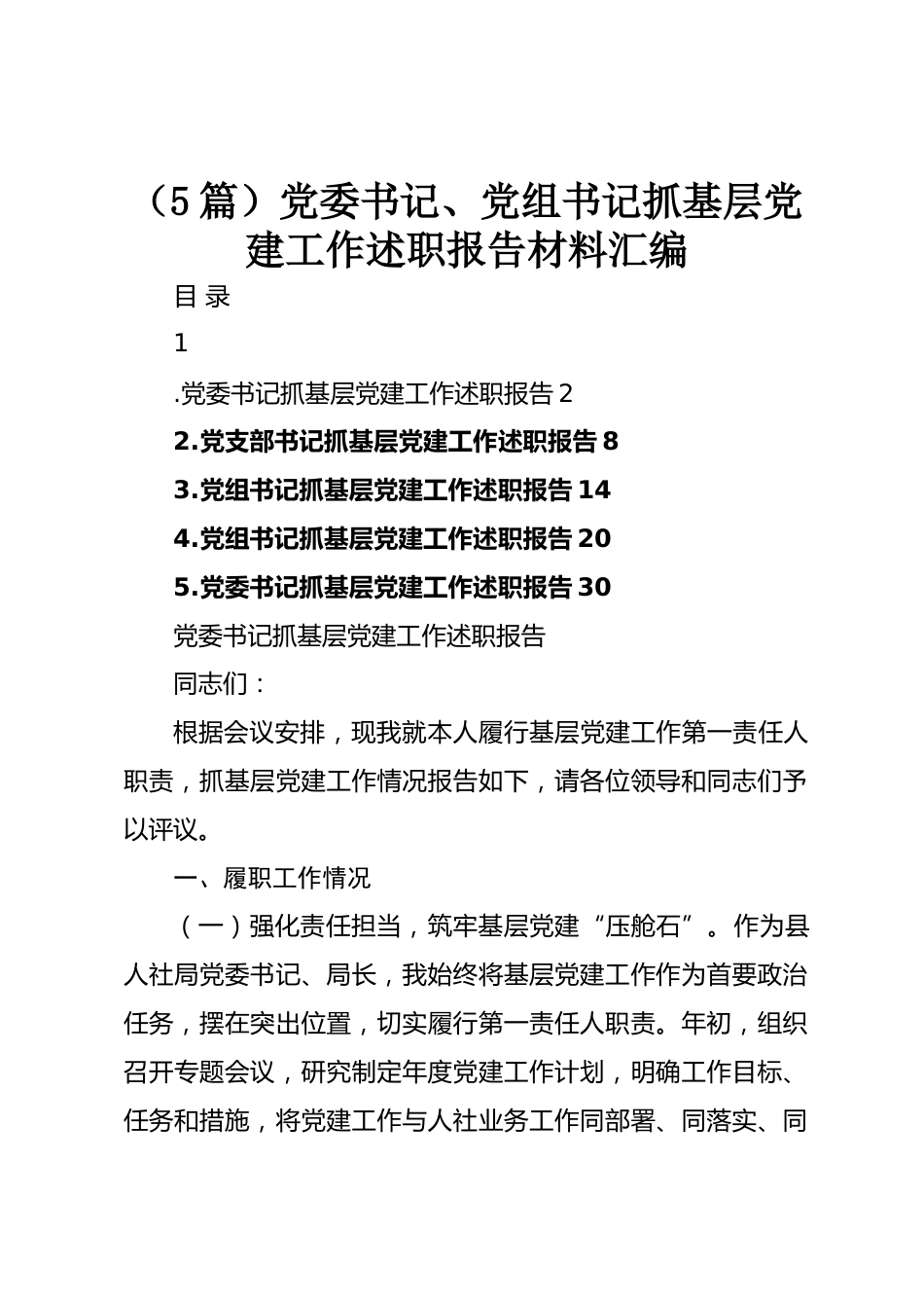 (5篇)黨委書記、黨組書記抓基層黨建工作述職報告材料匯編