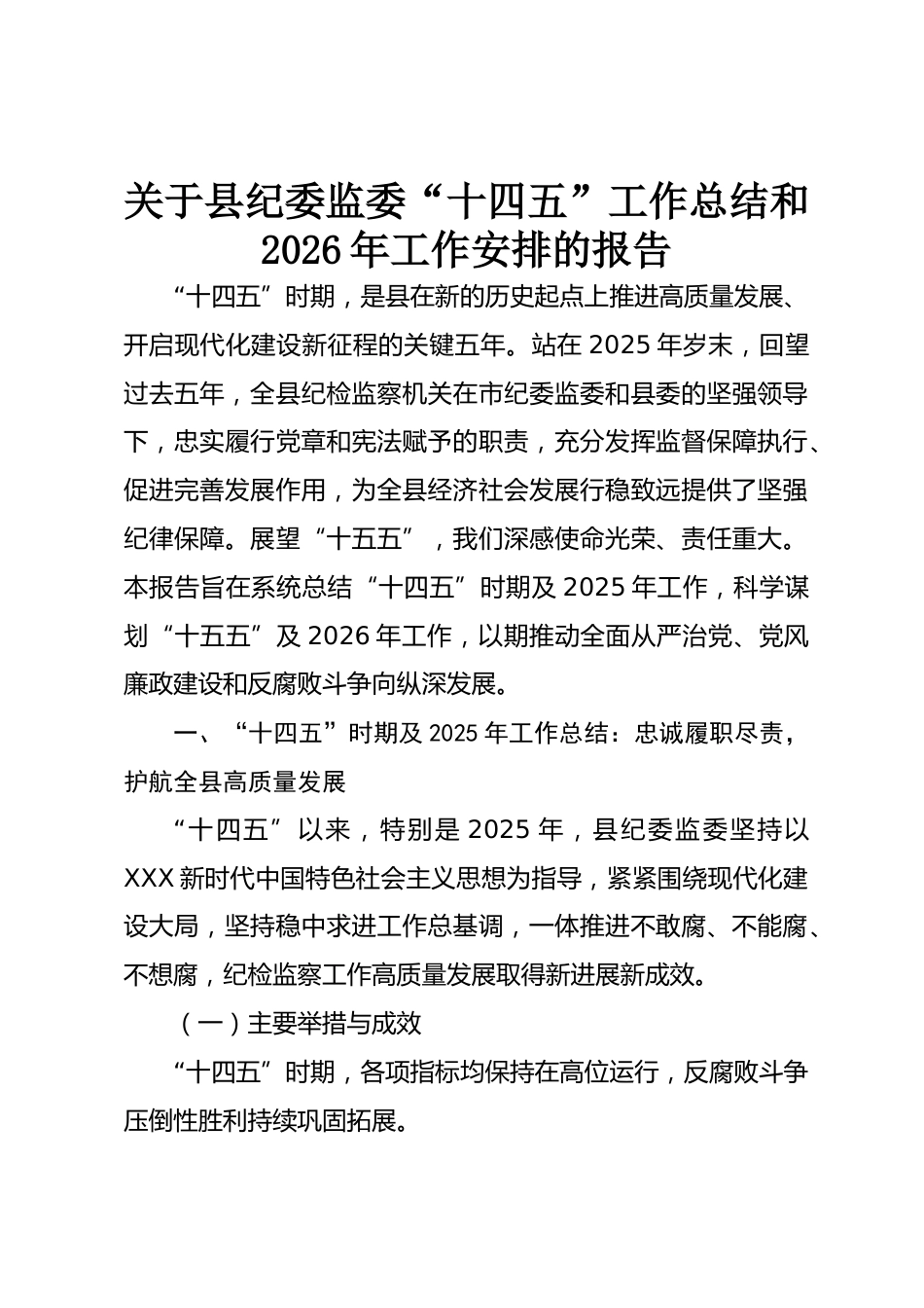 關(guān)于縣紀(jì)委監(jiān)委“十四五”工作總結(jié)和2026年工作安排的報告