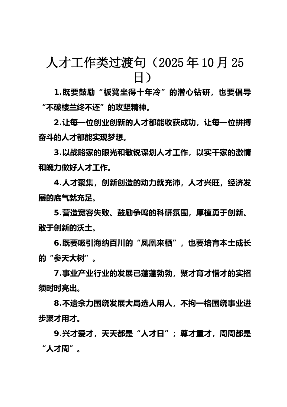 人才工作類(lèi)過(guò)渡句(2025年10月25日)