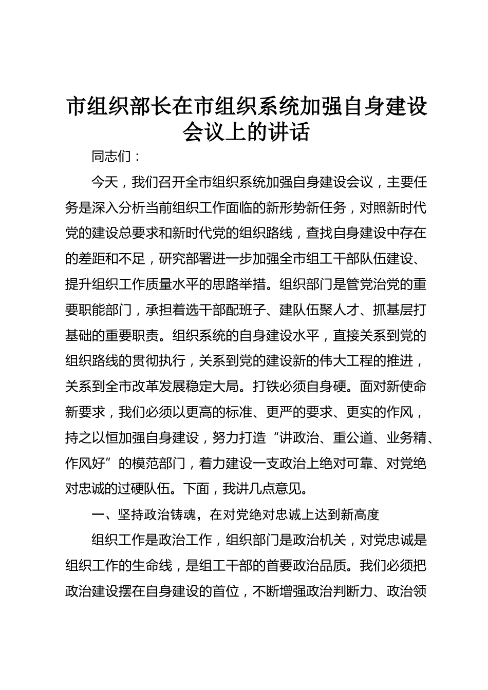 市組織部長(zhǎng)在市組織系統(tǒng)加強(qiáng)自身建設(shè)會(huì)議上的講話(huà)
