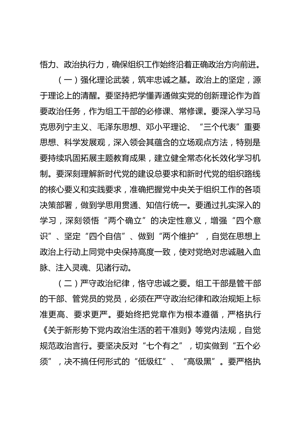 市組織部長(zhǎng)在市組織系統(tǒng)加強(qiáng)自身建設(shè)會(huì)議上的講話(huà)同志們:今天,我們召開(kāi)全市組織系統(tǒng)加強(qiáng)自身建設(shè)會(huì)議,主要任務(wù)是深入分析當(dāng)前組織工作面臨的新形勢(shì)新任務(wù),對(duì)照新時(shí)代黨的建設(shè)總要求和新時(shí)代黨的組織路線(xiàn),查找自身建設(shè)中存在的差距和不足,研究部署進(jìn)一步加強(qiáng)全市組工干部隊(duì)伍建設(shè)、提升組織工作質(zhì)量水平的思路舉措。組織部門(mén)是管黨治黨的重要職能部門(mén),承擔(dān)著選干部配班子、建隊(duì)伍聚人才、抓基層打基礎(chǔ)的重要職責(zé)。組織系統(tǒng)的自身建設(shè)水平,直接關(guān)系到黨的組織路線(xiàn)的貫徹執(zhí)行,關(guān)系到黨的建設(shè)新的偉大工程的推進(jìn),關(guān)系到全市改革發(fā)展穩(wěn)定大局。打鐵必須自身硬。面對(duì)...