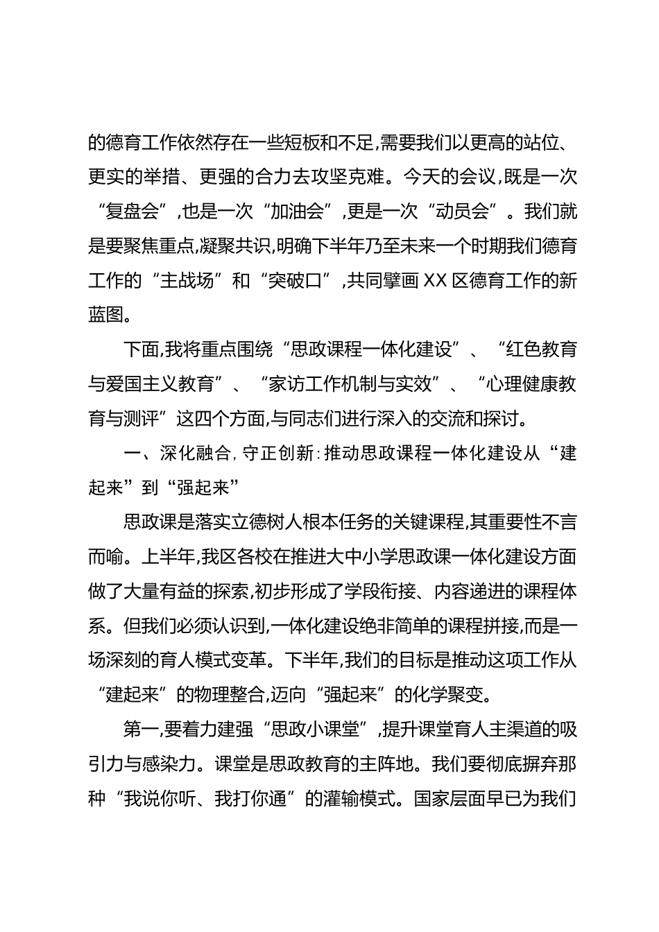 在XX區(qū)2025年下半年中小學德育工作推進會議上的講話