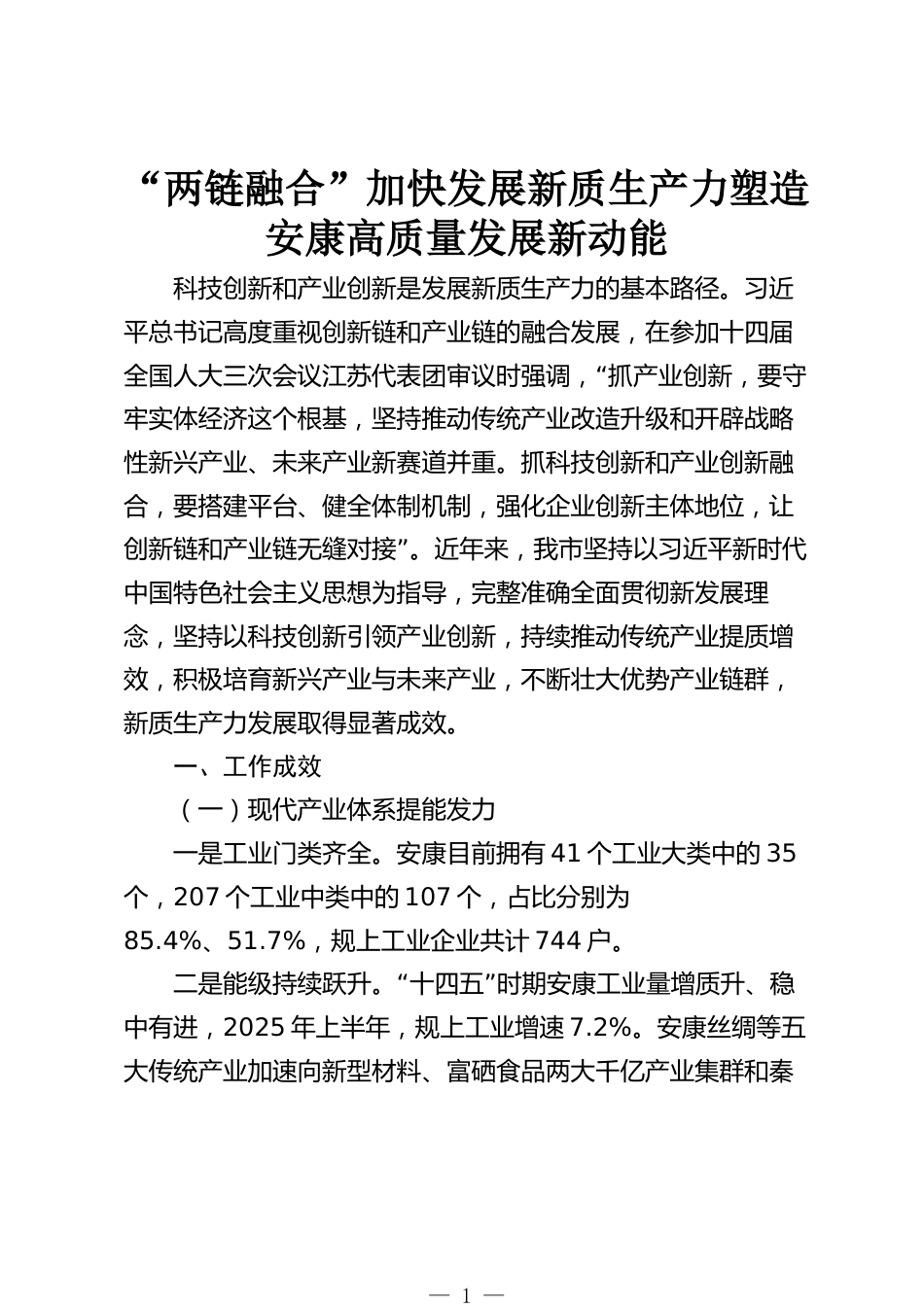 “兩鏈融合”加快發(fā)展新質(zhì)生產(chǎn)力塑造安康高質(zhì)量發(fā)展新動(dòng)能