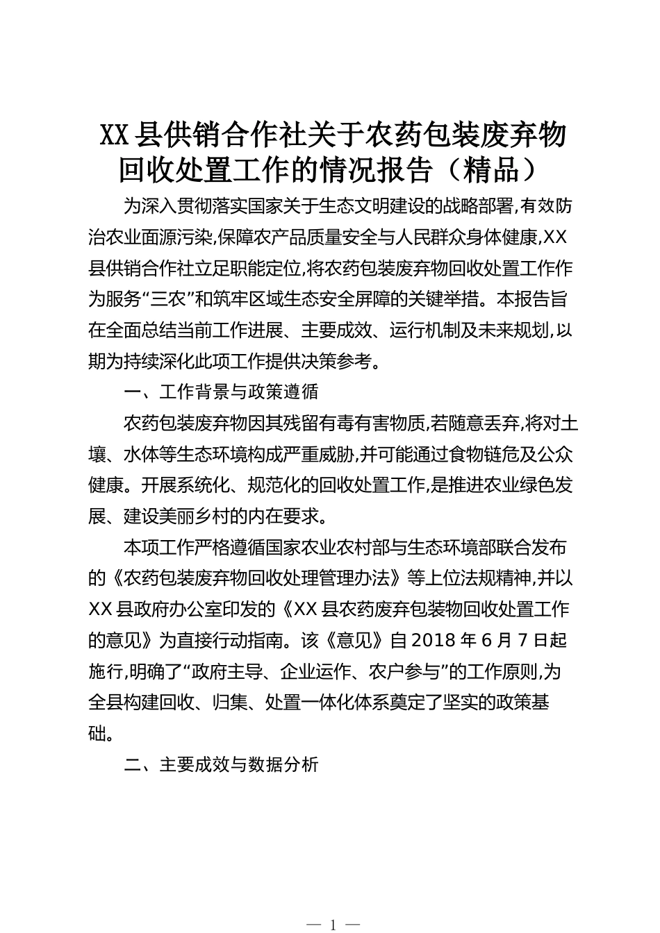 XX縣供銷合作社關(guān)于農(nóng)藥包裝廢棄物回收處置工作的情況報告(精品)