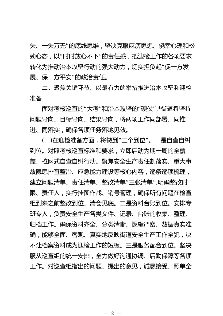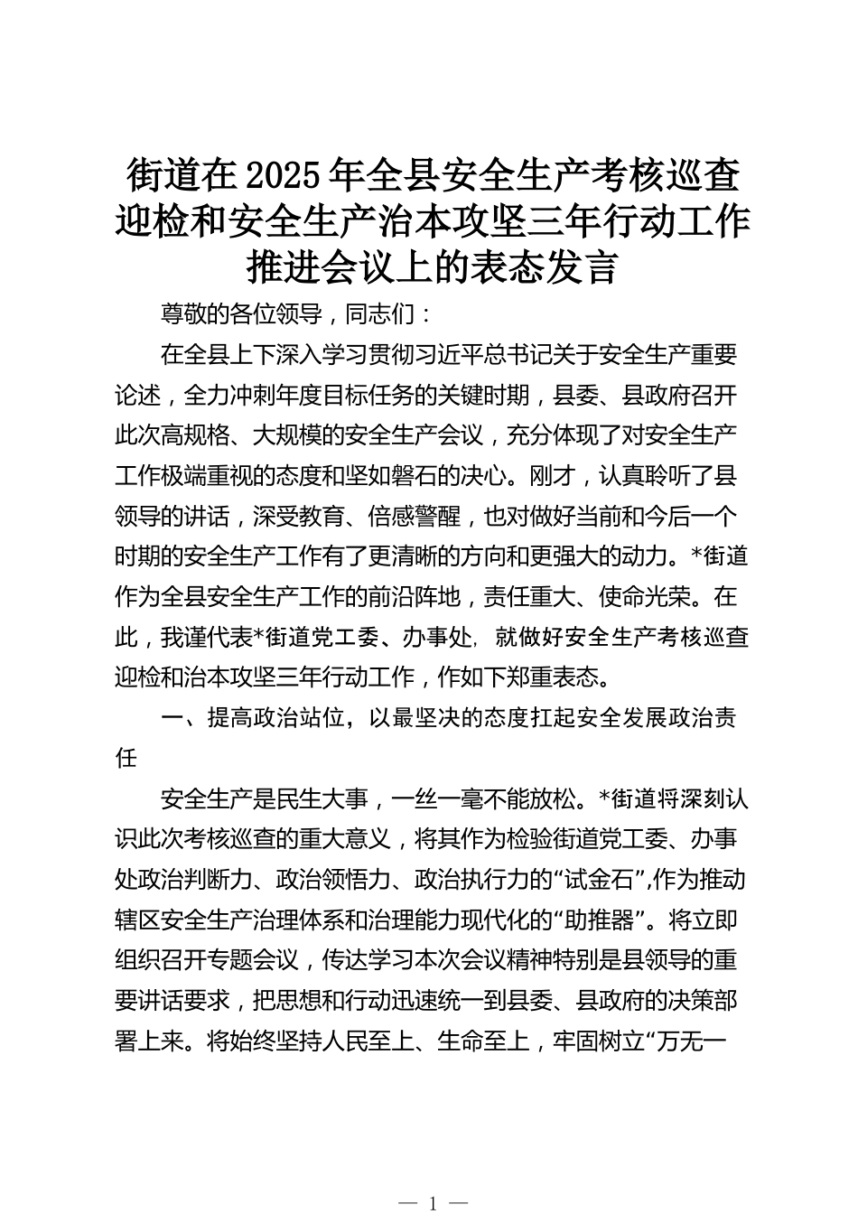 街道在2025年全縣安全生產(chǎn)考核巡查迎檢和安全生產(chǎn)治本攻堅(jiān)三年行動(dòng)工作推進(jìn)會(huì)議上的表態(tài)發(fā)言