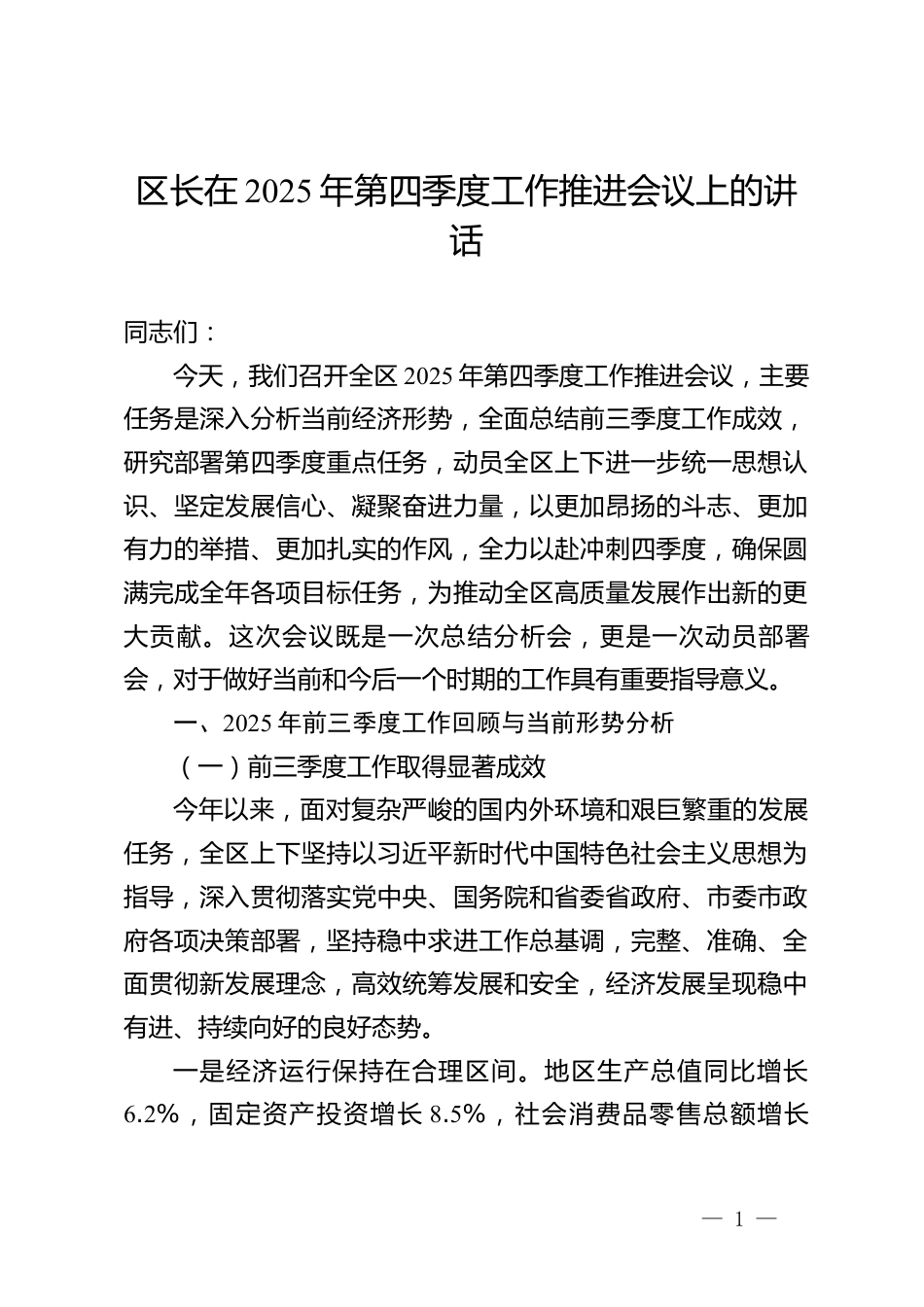 區(qū)長(zhǎng)在2025年第四季度工作推進(jìn)會(huì)議上的講話