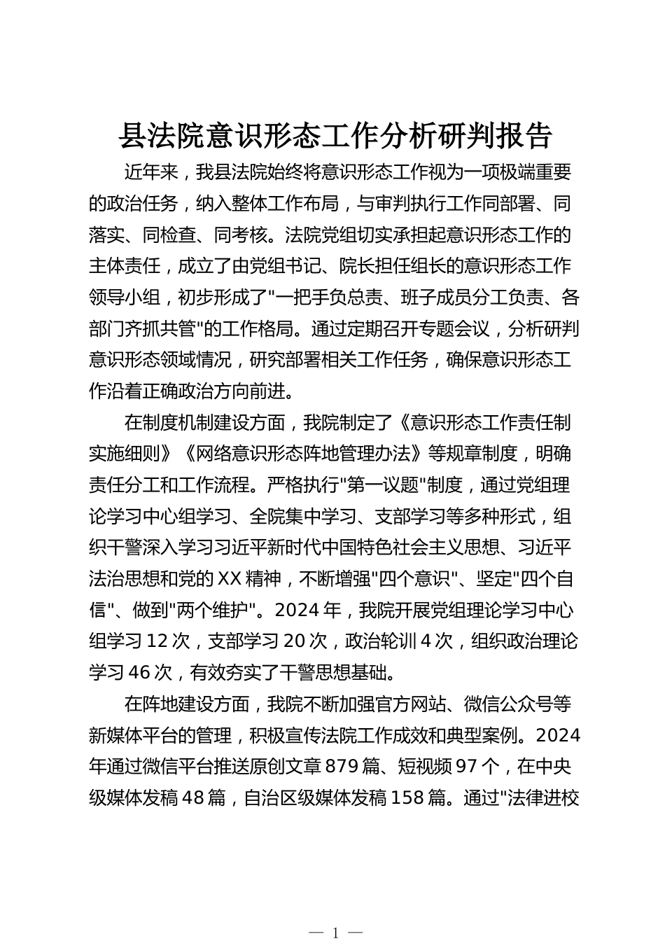 縣法院意識形態(tài)工作分析研判報告