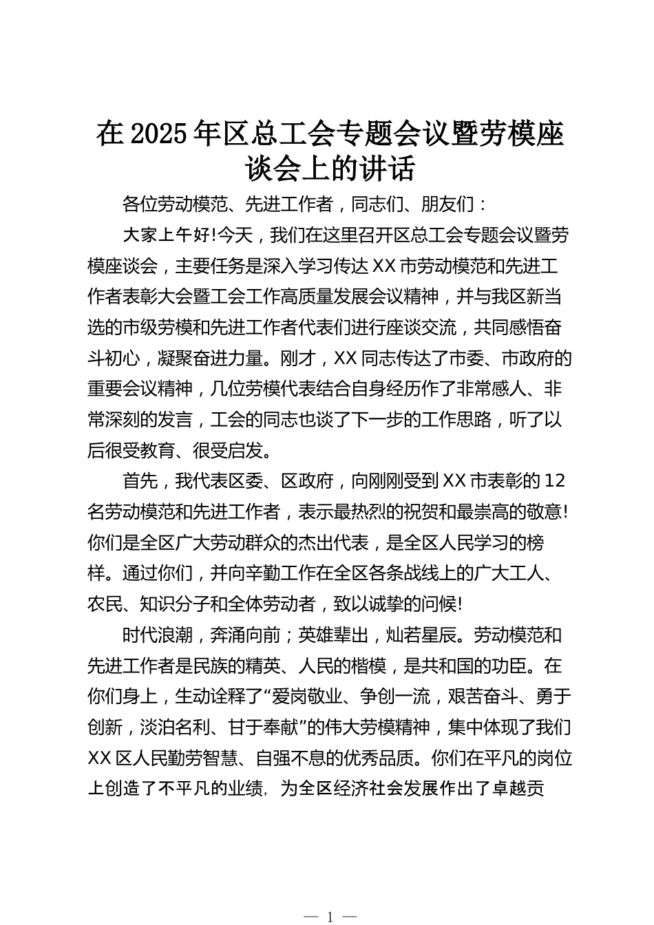 在2025年區(qū)總工會(huì)專(zhuān)題會(huì)議暨勞模座談會(huì)上的講話(huà)