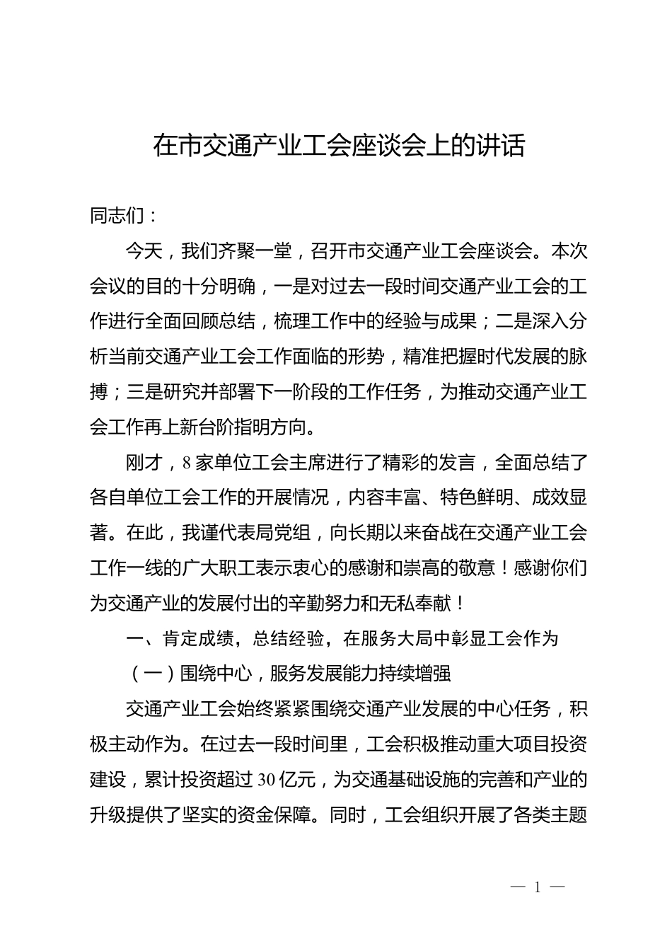 在市交通產(chǎn)業(yè)工會座談會上的講話
