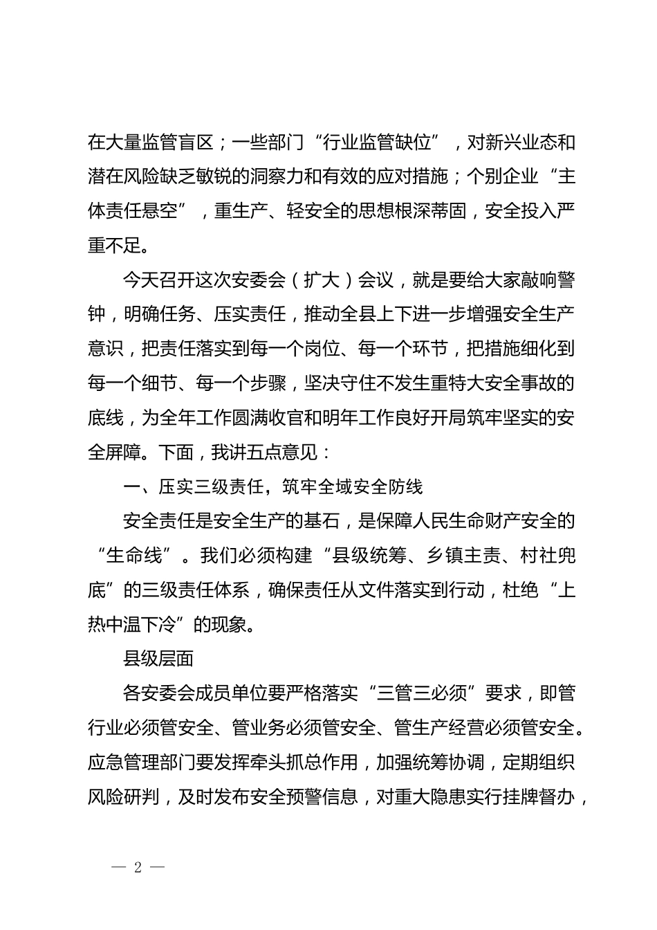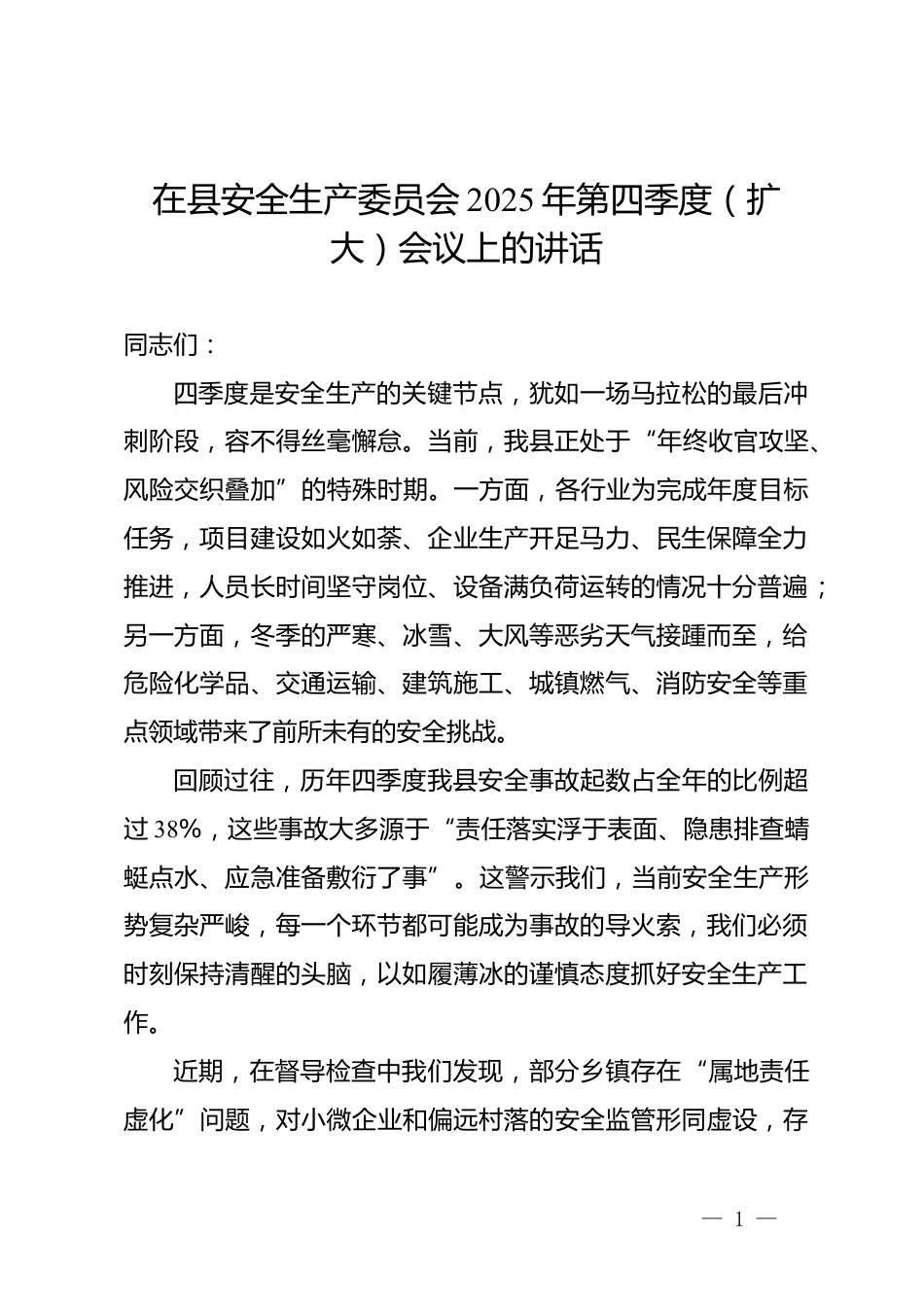 在縣安全生產(chǎn)委員會(huì)2025年第四季度(擴(kuò)大)會(huì)議上的講話(huà)