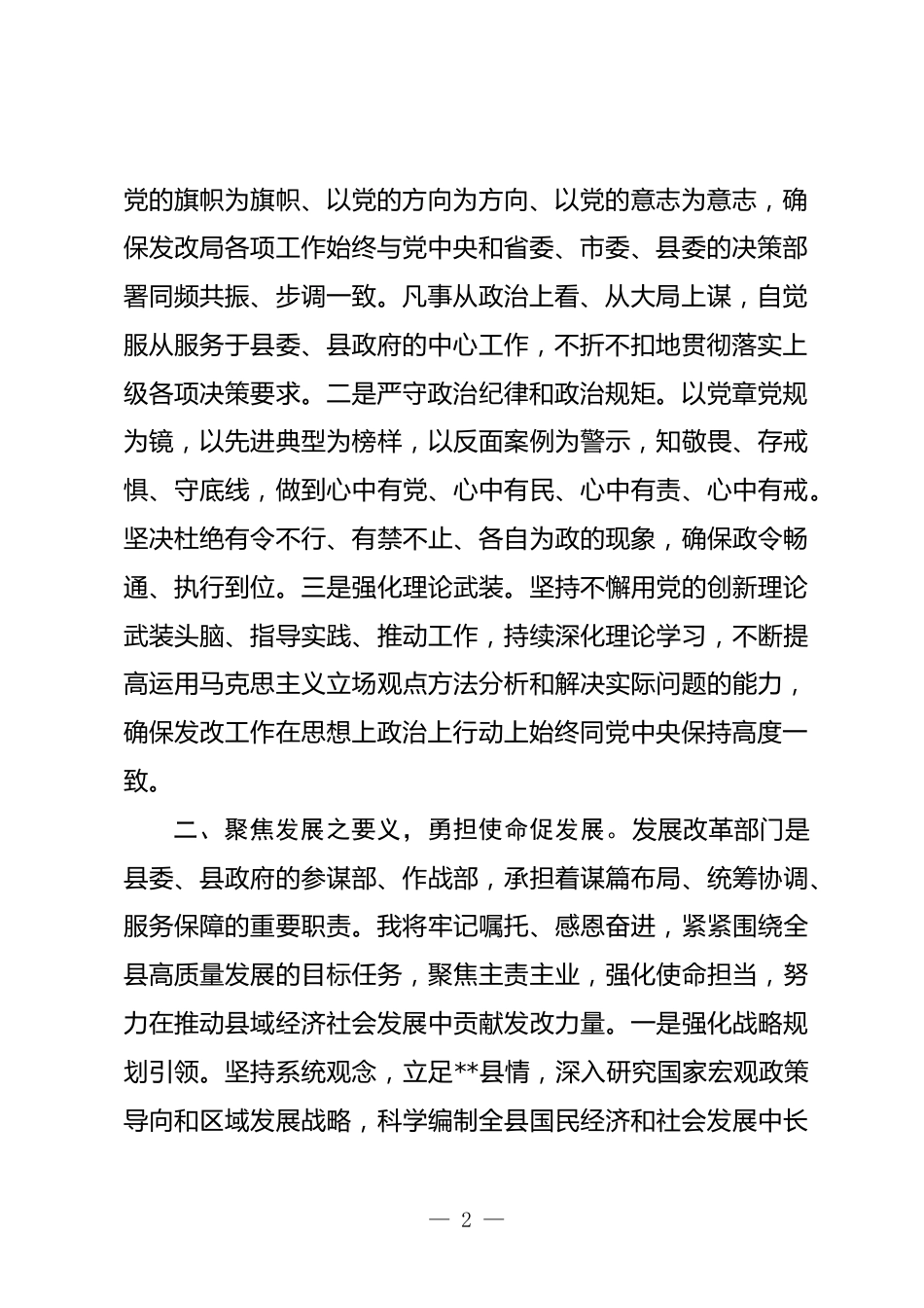 2025年新任發(fā)改局長(zhǎng)任職表態(tài)發(fā)言