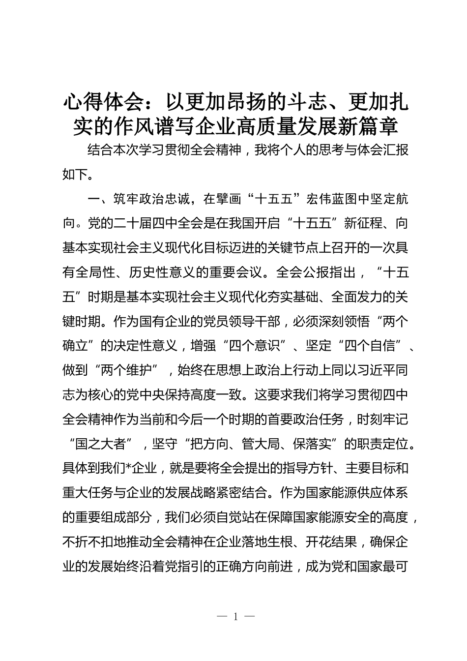心得體會(huì):以更加昂揚(yáng)的斗志、更加扎實(shí)的作風(fēng)譜寫(xiě)企業(yè)高質(zhì)量發(fā)展新篇章