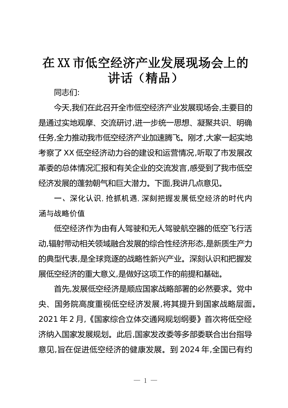 在XX市低空經(jīng)濟(jì)產(chǎn)業(yè)發(fā)展現(xiàn)場(chǎng)會(huì)上的講話(精品)