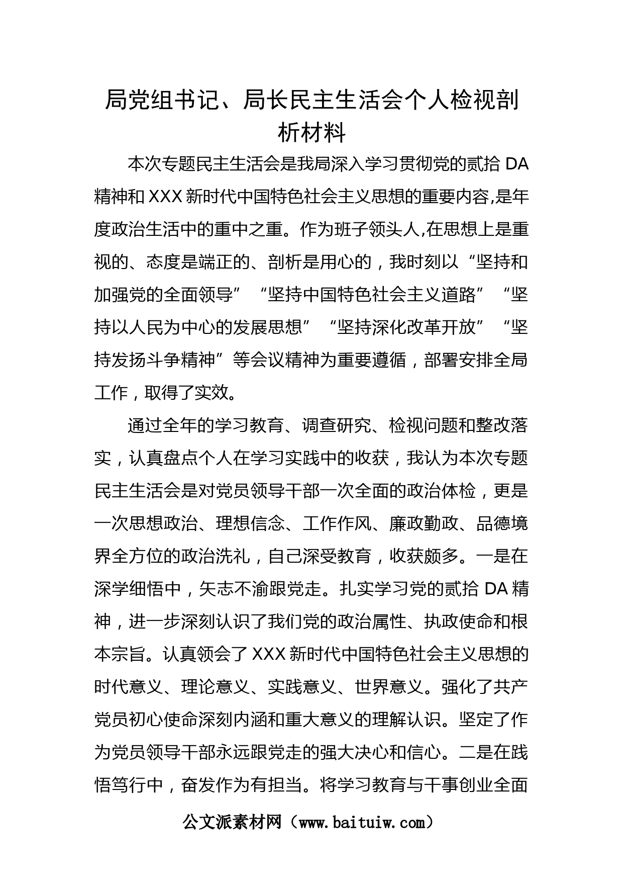 局黨組書(shū)記、局長(zhǎng)民主生活會(huì)個(gè)人檢視剖析材料VIP免費(fèi)