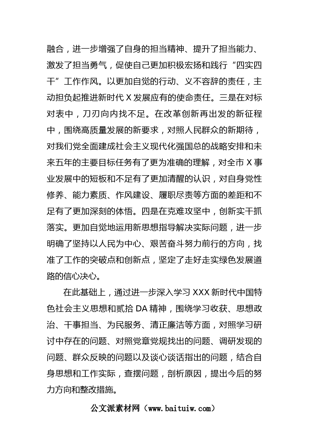 局黨組書(shū)記、局長(zhǎng)民主生活會(huì)個(gè)人檢視剖析材料本次專題民主生活會(huì)是我局深入學(xué)習(xí)貫徹黨的貳拾DA精神和XXX新時(shí)代中國(guó)特色社會(huì)主義思想的重要內(nèi)容,是年度政治生活中的重中之重。作為班子領(lǐng)頭人,在思想上是重視的、態(tài)度是端正的、剖析是用心的,我時(shí)刻以“堅(jiān)持和加強(qiáng)黨的全面領(lǐng)導(dǎo)”“堅(jiān)持中國(guó)特色社會(huì)主義道路”“堅(jiān)持以人民為中心的發(fā)展思想”“堅(jiān)持深化改革開(kāi)放”“堅(jiān)持發(fā)揚(yáng)斗爭(zhēng)精神”等會(huì)議精神為重要遵循,部署安排全局工作,取得了實(shí)效。通過(guò)全年的學(xué)習(xí)教育、調(diào)查研究、檢視問(wèn)題和整改落實(shí),認(rèn)真盤(pán)點(diǎn)個(gè)人在學(xué)習(xí)實(shí)踐中的收獲,我認(rèn)為本次專題民主生活會(huì)是對(duì)黨員領(lǐng)導(dǎo)干部...