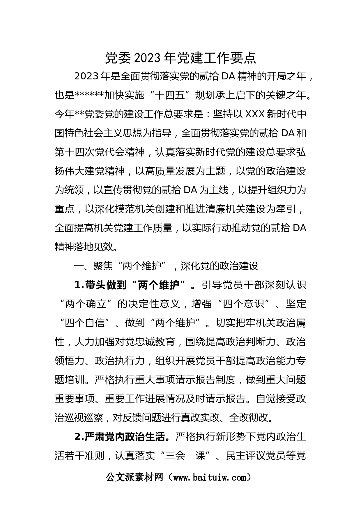 2023年黨委黨建工作要點(diǎn)VIP免費(fèi)