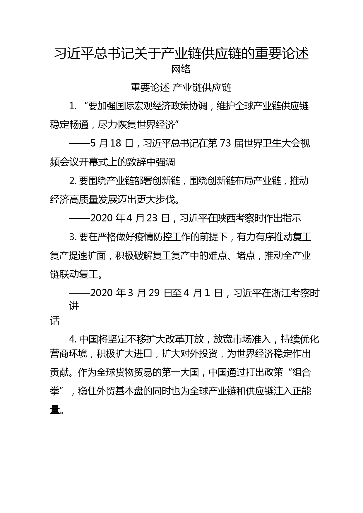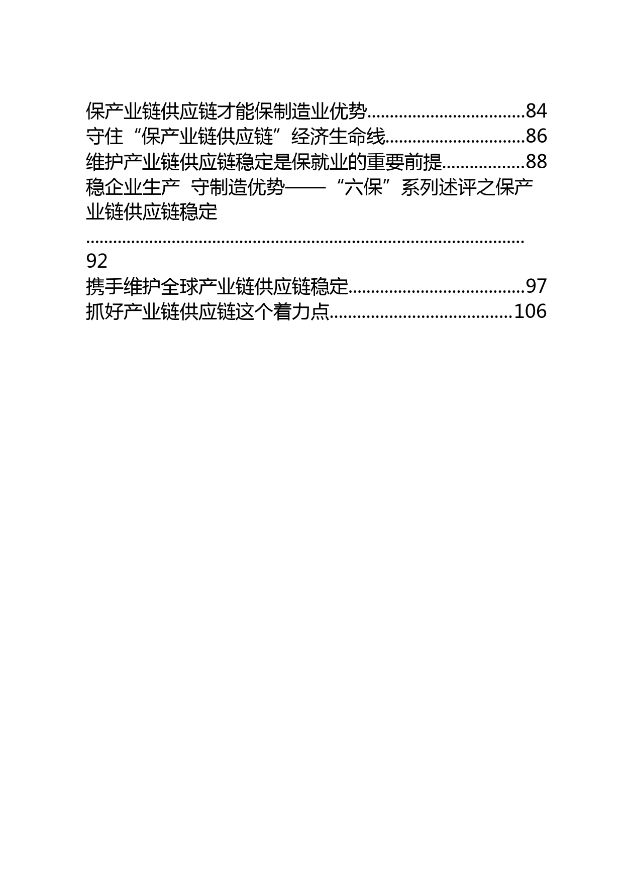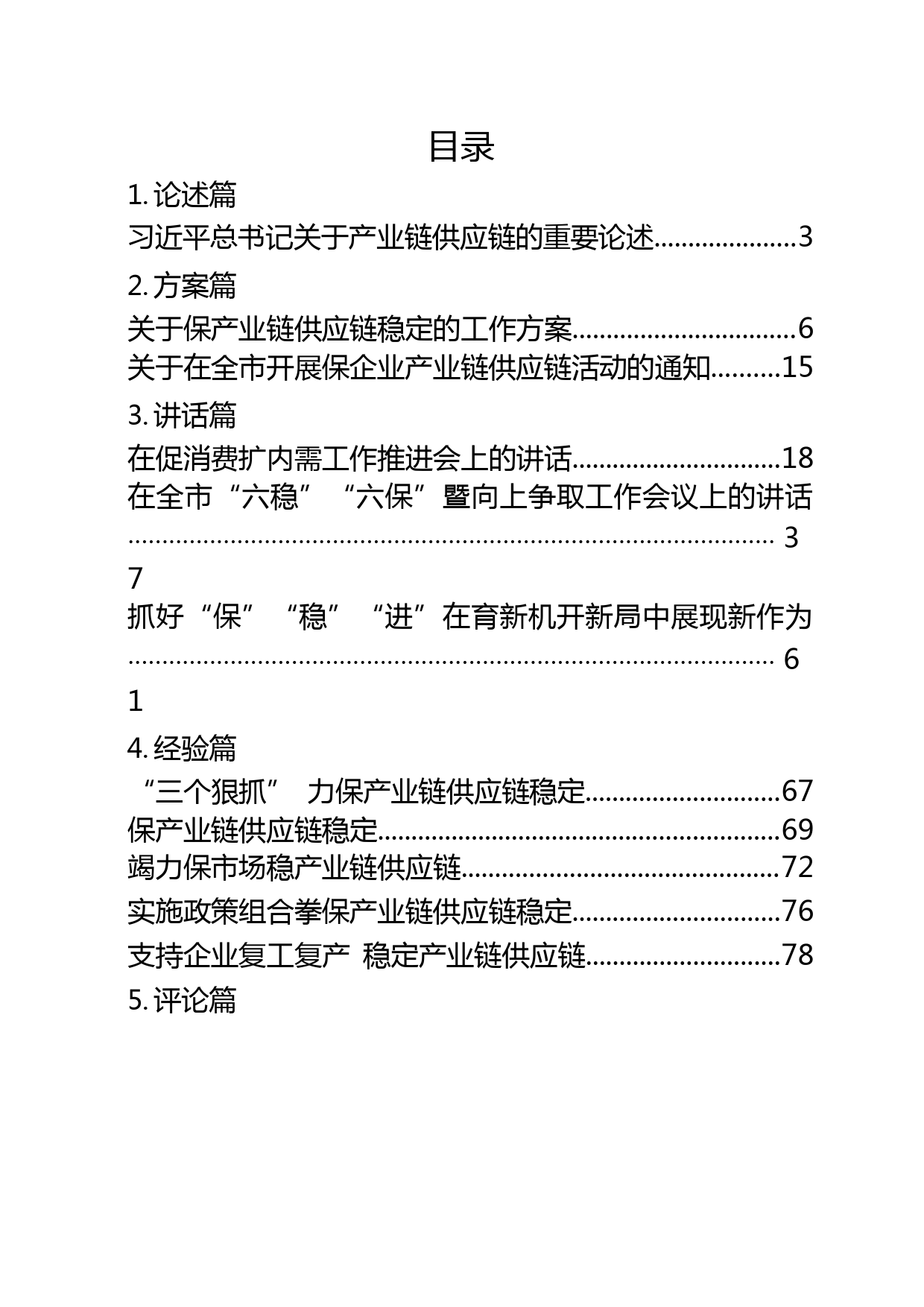 目錄1.論述篇習(xí)近平總書(shū)記關(guān)于產(chǎn)業(yè)鏈供應(yīng)鏈的重要論述.....................32.方案篇關(guān)于保產(chǎn)業(yè)鏈供應(yīng)鏈穩(wěn)定的工作方案.................................6關(guān)于在全市開(kāi)展保企業(yè)產(chǎn)業(yè)鏈供應(yīng)鏈活動(dòng)的通知..........153.講話篇在促消費(fèi)擴(kuò)內(nèi)需工作推進(jìn)會(huì)上的講話...............................18在全市“六穩(wěn)”“六?!濒呦蛏蠣?zhēng)取工作會(huì)議上的講話...............................................................................................37抓好“保”“穩(wěn)”“進(jìn)”在育新機(jī)開(kāi)新局中展現(xiàn)新作為...................................................................